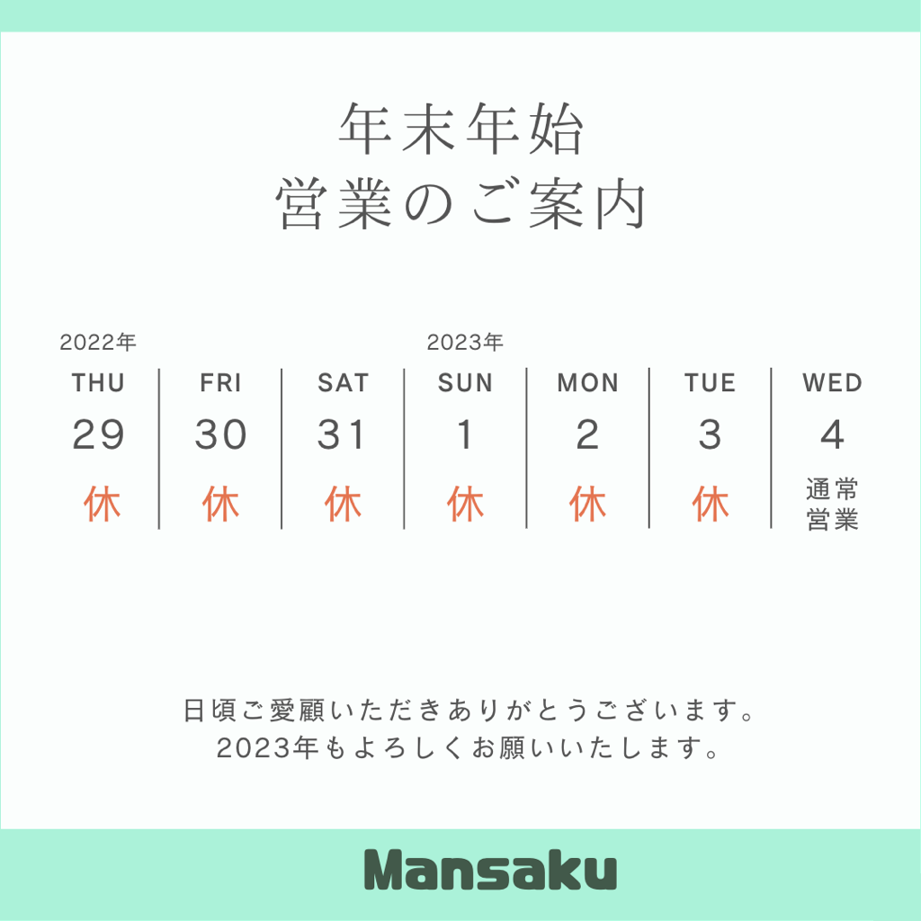 年末年始休業のお知らせ
